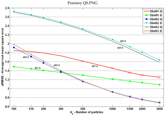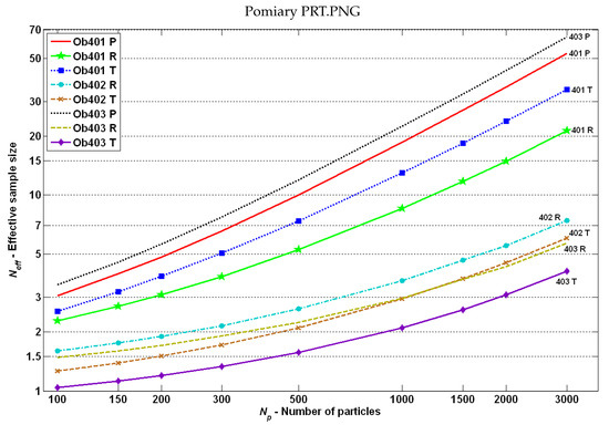 One possible solution may be the usage of an adaptive sample size [41]; however, this would only result in the increase of the particle number, as much as ESS would achieve a set threshold. Another method, which should improve the effective sample size, is the Population Monte Carlo (PMC) algorithm [42,43]. In this approach, it is assumed that particles are divided into a few groups and each one is drawn from different PDFs. Every PDF is calculated based on the drawn, up to this moment, particles and their weights. Yet another solution could be a double drawing: the first time locating an interesting area and the second time drawing mainly from this subspace. The authors are already working on a new PF algorithm that will be based on the latter approach.