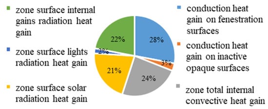 Composition of accumulated cooling load in perimeter zones with lightweight construction on a Nanjing cooling design day (embedded surface cooling system (ESCS)).