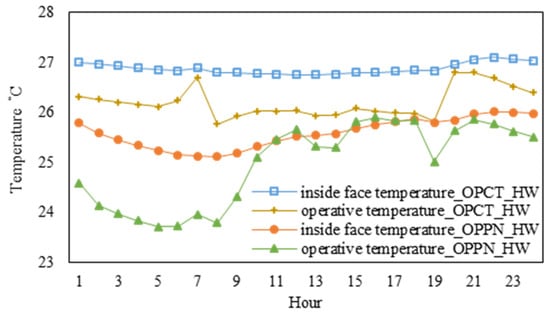 Inside face temperatures of external opaque walls with different structures in north perimeter zones with ESCS.