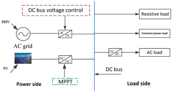 In recent years, with the strong support of the government for distributed energy and the development of power electronics technology, increasing distributed energy sources (such as wind power generation, photovoltaic power generation and new energy vehicles) are connected to the power grid, as well as the popularization and promotion of many DC household electrical appliances and the wide application of industrial frequency conversion technology, which make the power supply and load composition of the distribution network change significantly [1,2,3]. The AC distribution network is facing many challenges, such as security, stability, and efficiency of power supply, because of the diversity and uncertainty of load and power supply. In response to this phenomenon, the concept of DC distribution network began to be put forward and gradually became a research hotspot.