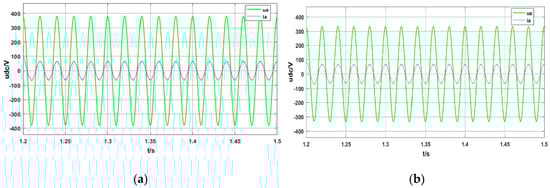It can be seen from Figure 14 that the SMADRC controller has no effect on the current inner loop controller. The PI controller of current inner loop can make the current phase of AC side track the voltage phase and realize unit power rectification. The control effect of the two controllers is almost the same from this point of view.