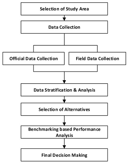 The basic framework followed for the analysis of energy-efficient public transport bus system alternatives is shown in Figure 2. A step-by-step working formation has been designed following previous patterns [25,26] given in the flowchart.