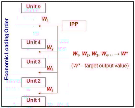 One option in the MERSIM module of WASP is that the user specifies the loading order of the generating units, instead of the default option that determines the loading order based on variable operating costs. This provides the user with the opportunity to shift a particular unit upwards or downwards in the loading order in order to set its output to the desired level. This procedure is depicted in Figure 2.