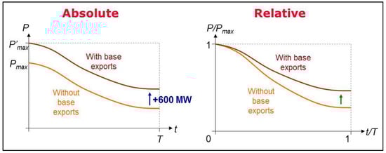 Modifying absolute and relative load duration curve (LDC) in order to accommodate for base power exports.