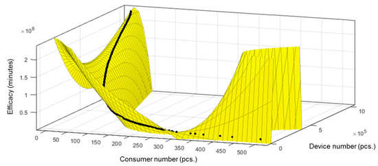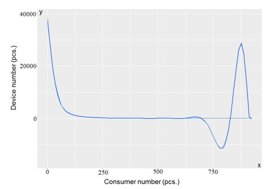 Plotted on a graph, these data can be seen in Figure 2. Figure 2 illustrates the device number (vertical) in the function of consumer numbers (horizontal).