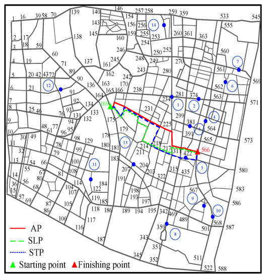 | Time Period | Path Method | Average Mileage/km | Average Time Consumption/min | Proportions of the First, Second and Third Road Grade/% | Running Time/s |