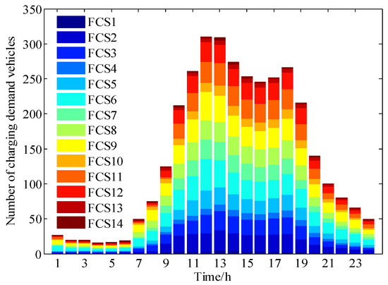 In the previous study [37], according to ‘Implementation Plan for Promotion and Application of New Energy Vehicle in Nanjing during the 13th Five-Year Plan’ and the current development status of EVs in China, we introduced a total number of 23,780 vehicles, including private vehicles, taxis and other public vehicles. The specific number and attribute of each type of vehicle were consistent with the relevant description in [37], and readers may refer to this literature for more detailed information.
