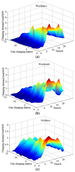 | Case Study 1 | 1. Trip data on weekdays, weekends and holidays 2. Geographic position information of FCSs | 1. Single electric vehicle model 2. Human behavior decision-making model | Temporal–spatial distribution of fast charging demand load |