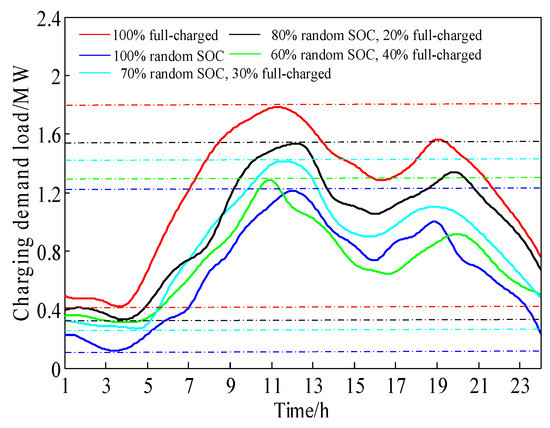 In terms of the statistical results [18], we assumed that State of Charge (SOC) at the first trip time obeyed a normal distribution N (0.8, 0.1), so the initial battery capacity of each introduced vehicle can be generated combining with the battery capacity .