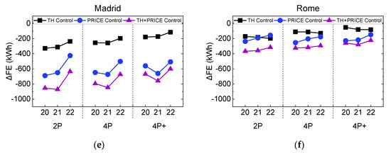 | Change in FE due to battery (kWh year−1) Small/medium PV size | 628/1138 | 626/1333 | 121/1362 | 766/1349 | 1056/1428 | 946/1271 |
