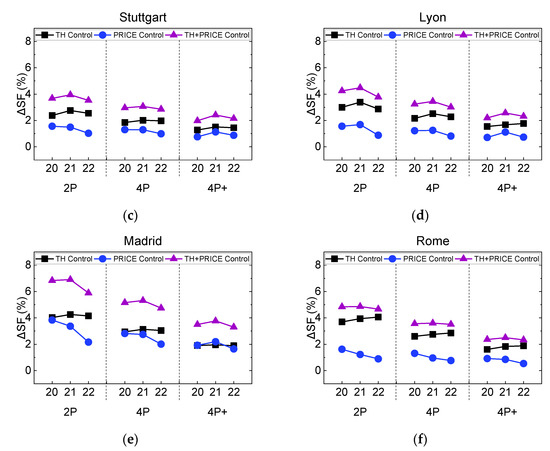 | PRICE_TH + EL | 1 | Overheating SH, DHW PVexcess > 320 | ±0.5 K 2, 1 K 1 | Ref, +6 K 1 | Appliances |