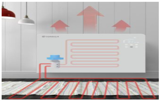 An electric heat pump was used as the heat source for the heating system, and the energy consumption of each system was measured using a power meter. Water was used as the medium for supplying heat to the heating system. The initial temperature of the heat medium (hot water) was set to 55 °C.