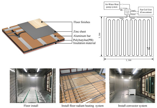 To evaluate the thermal comfort and energy consumption according to the target heating system, a radiant floor heating system and a convector were installed in a test chamber (