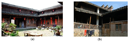Interior courtyard facades in (a) Heyang and (b) Danzhi.