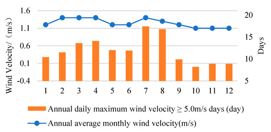 36], and the annual average wind speed is approximately scaled 1. However, typhoons are frequent and reach wind speeds of scale 6 to 8 in the low mountain range and scale 9 to 10 in the high mountain range. Early summer is called the plum rain season, in which high humidity and continuous rains are experienced, and typhoons and local thunderstorms are frequent in midsummer. Intense solar radiation, high temperature and humidity, rainy conditions, and hail mainly occur between March and August [