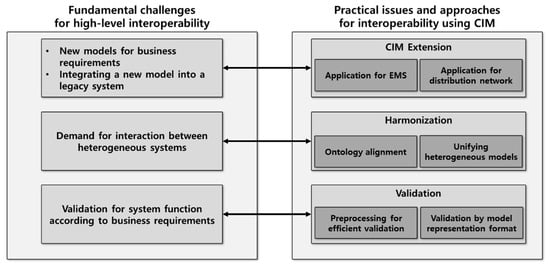 The rest of the paper is organized as follows. Section 2 explains how to identify practical issues in establishing interoperability using CIM, such as CIM extension, harmonization, and validation. Section 3 categorizes and summarizes the extended model for various business requirements. Section 4 presents a categorization of approaches for information exchange between CIM and IEC 61850. Section 5 summarizes the research on validation, addressing the efficiency and methodology. The last section reports the discussion and conclusions.