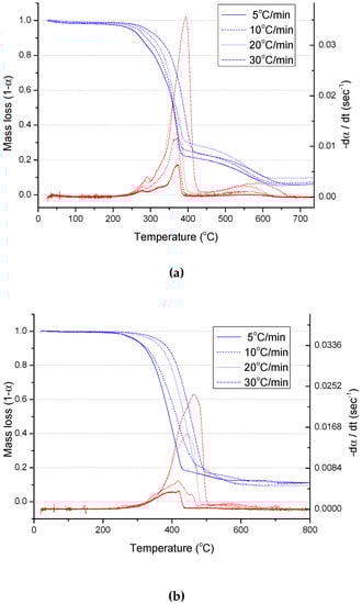 - Vyazovkin, S.; Wight, C. Model-free and model-fitting approaches to kinetic analysis of isothermal and non-isothermal data. Thermochim. Acta 1999, 340–341, 53–68. [Google Scholar] [CrossRef]