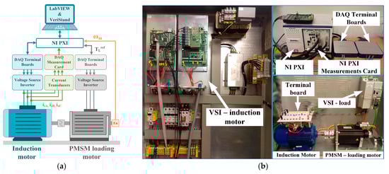 Nowadays, drive systems based on AC (alternative current) electric motors play a key role in industrial applications. It is estimated that these machines account for approximately 29% of global and 69% of industrial electricity consumption. During the operation of electric motors in industrial drive systems, various types of defects may occur, preventing further operation of the machine. According to EPRI’s statistics, the most common defects of electrical machines include stator (37%), rotor (10%), and rolling bearing (41%) damages. The conducted static tests show that, with the increase of the rated power of electric motors, the role of mechanical damages in favor of electrical damages decreases []. This fact causes that many scientific centers are focusing on developing diagnostic methods, enabling a partial reduction of the number of electrical damages or detecting the state of the machine (incipient fault), in which it can still be repaired.