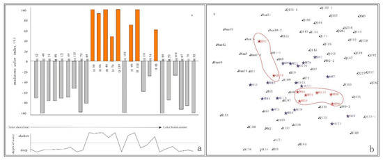 Mudstone Color Values of Sand Group V in Qiang-2 Member. (a) A diagram for water depth interpretation based on the analysis of mudstone color values; (b) A well position map (the asterisk is for the well in Figure 6a).