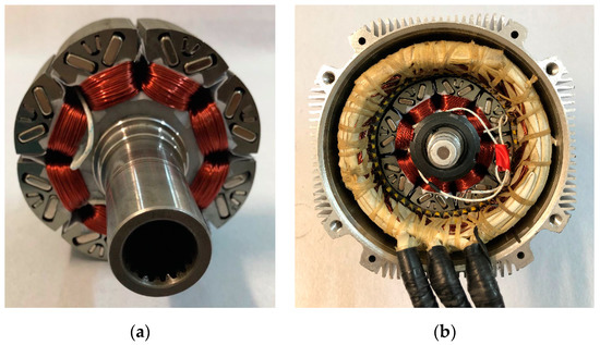 In the past decades, many kinds of new HESM topologies have proposed and studied, which are mainly focused on the claw-pole type [8,9,10], the parallel type [11,12,13], rotor magnetic shunt type [14,15], and the combined rotor type [16], and most of them are used in generator systems. However, there are two main problems in these types of HSEMs. On the one hand, there is axial flux, which limits the axial length of the motor. On the other hand, there is an additional air-gap between the magnetic bridge and the rotor core, which reduces the efficiency of the motor, and the structure of the motor is more complex.