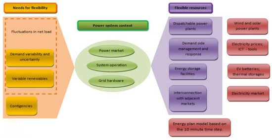 Alternative sources of energy production have been proposed in order to replace conventional fuels and reduce GHG emissions. According to that, future power systems will utilize a high share of RES in energy production and a high share of EVs in transport sector. Such systems have higher requirements for flexibility in the system due to the intermittent nature of energy production from RES. Figure 1 shows that the needs for flexibility in the power system come from variable RES and a high share of EVs with a variable demand. Flexibility can be provided through dispatchable RES power plants, ICT tools, different storage technologies, interconnection with adjacent markets and electricity prices and energy plan model based on a short-term scale. This work is aiming to provide results showing that energy planning in time step of 10 min can achieve better integration of RES and decrease EV charging costs in compare to a SC and URC. This could be achieved with the adoption of EV FC and V2G technology regulated through variable electricity prices set according to the production of RES and connected to electricity market. An energy plan model done for the Dubrovnik region in 1 h time step till the year 2050, showed that even slight variability in electricity prices of the existing two tariff model can affect the decrease in CEEP and impact of EV charging on maximum peak demand [1].