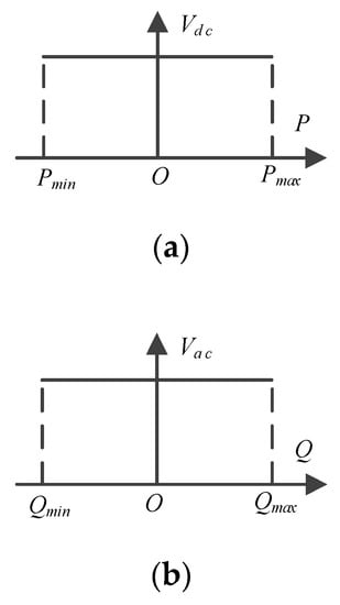 From Equation (5), it can be concluded that the SOP itself cannot generate active power. Once the electronic convert of SOP at a feeder regulates the terminal active power, other cooperation is needed. Therefore, it is necessary to establish the external characteristic model of the soft open point access network strategy and further study the active power distribution.