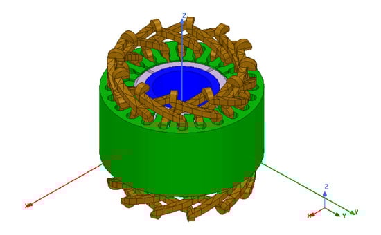 We used an experimental platform to analyze the working conditions at rotor deflections of 0°, 15°, and 30°. Figure 27 shows the corresponding experimental setup, and 2D models of the stator winding scheme, 3D model of the rotor, and 3D model of the stator are shown in Figure 28, Figure 29, and Figure 30, respectively.