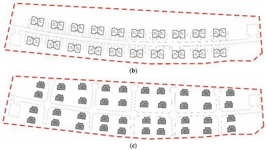 According to the Eurostat Agency [30], in 2017, as much as 33.6% of the population of the European Union resided in detached single-family houses, while 24.0% of the population lived in semi-detached single-family houses. According to data provided by the Polish General Construction Inspector’s Office [31], in 2018, a total of 98,915 building permit applications were filed for residential buildings, out of which 93,714 building permits were issued for single-family houses (almost 94.8%), which constituted a 3% increase from the previous year [31]. The results of statistical studies presented by BPD Europe BV [32] indicate that 12% of respondents from The Netherlands, 16% of respondents from France and 17% of respondents from Germany who had been searching for a new place of residence pointed to a single-family house as a preferred option in a situation in which they would have to move to a different dwelling. This proves that single-family buildings remain popular in many developed countries, while in countries such as Poland they continue to enjoy very high popularity. The design of single-family building complexes can therefore be considered an important field, both to planners who design urban layouts for individual projects, as well as designers who work on projects composed of many such buildings.
