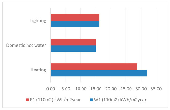 The implementation of the Directive into Polish state law has introduced a new standard of near zero-energy buildings (NZEBs). The document that has been amended to include the standard, as stipulated in the Directive, is the Ordinance on the Technical Conditions that Must be Met by Buildings and their Placement [34]. In the Polish definition of NZEBs there are two criteria. The first criterion is ensuring proper building envelope thermal insulation. The second criterion for NZEB buildings in Poland applies to Primary Energy (PE), which cannot exceed a set value for different types of buildings. For single-family residential buildings without cooling installations, the maximum PE value is 70 kWh/(m2/annum). The buildings analysed in the article meet both criteria, thus being compliant with NZEB standards as stipulated in Polish regulations.