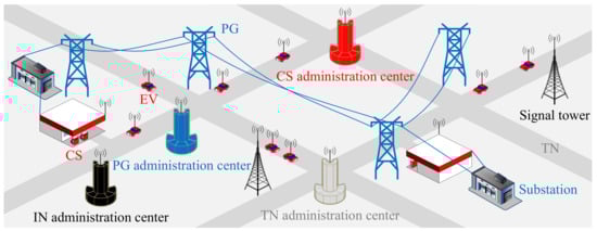 Fortunately, the distribution of EVs charging load is also characterized by flexible load with a potential for regulation although it is uncertain. The potential can be found in two aspects. On the one hand, the CN (as shown in Figure 1) integrates the attributes of a PG, a transportation network (TN), and an information network (IN), which allows EV users to select a CS base on bidirectional information interaction with the help of the navigation system and the CS administration center, so as to achieve the regulation of EVs charging load between CSs [8,9]. On the other hand, the advancement of battery technology and charging facility technology, especially the emergence of multi-gun charging piles can provide the necessary conditions for regulating EVs charging load in CSs [10]. Therefore, the study of regulating EVs charging load distribution appears to be particularly important and will create opportunities for the safe, economic, and efficient operation of the CN.