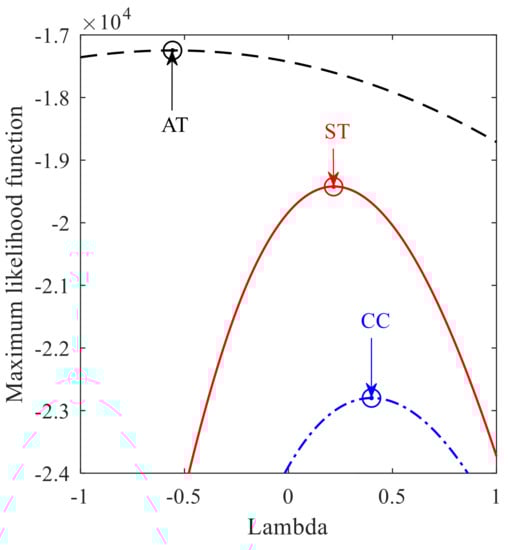 - Box, G.E.P.; Cox, D.R. An Analysis of Transformations Revisited, Rebutted. J. Am. Stat. Assoc. 1982, 77, 209–210. [Google Scholar] [CrossRef]