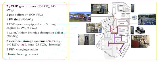 The presented DSS tool was applied to the campus of Savona, Italy. It closely resembles any urban district, since it hosts (a) educational buildings, such as offices, classrooms and laboratories; (b) research centers; (c) private companies; (d) student residences. The smart polygeneration microgrid contributes to the operation of its electrical and thermal systems [67]. Thanks to this infrastructure, the site may be considered an example of a “smart urban district”, equipped with distributed generations, local control and supervision infrastructures [68].