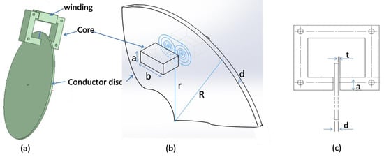 An eddy current brake (ECB) is an electric braking system that utilizes the basic principles of eddy currents, which are generated by the primary magnetic induction formed at the conductor. As the eddy current occurs in the conductor, the ECB braking torque is strongly influenced by the type of conductor material [1]. A magnetic material with a high permeability will provide a high flux density [1], whereas an eddy current could effectively be generated if the current flows on a material with a low electrical resistance. It can usually be provided by nonmagnetic materials [2]. Besides the influence of the conductor material, the amount of braking torque generated by the ECB is proportional to the density of the magnetic field in the air gap [3,4,5]. Still, the magnetic field density can be controlled by regulating the strength of the magnetic field. In addition to the magnetic field density, the magnetic field distribution also influences the braking torque. Single poles and multi-poles will produce different magnetic field distributions. For instance, the distribution of magnetic fields in multi-pole ECB is driven by the interactions between the magnetic field sources. On the other hand, in a unipolar axial type ECB with standard pole shoes, magnetic fluxes are uniformly distributed on the surface of the conductor. Therefore, each type of ECB design has a different level of complexity. Thus, the analytical approach for each ECB type differs according to the difficulty level and complexity of the calculated variables.