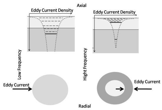 - Jiao, S.; Liu, X.; Zeng, Z. Intensive Study of Skin Effect in Eddy Current Testing With Pancake Coil. IEEE Trans. Magn. 2017, 53, 6201608. [Google Scholar] [CrossRef]