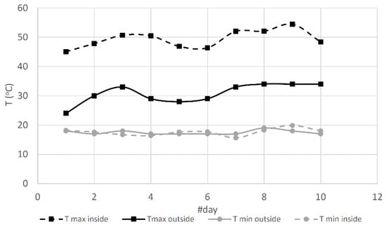Temperature distribution in the prototype (outside and inside).