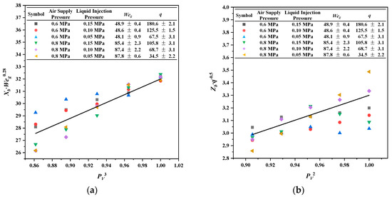 As shown in Figure 16, the fitting curves agreed well with the experimental data. For the addition of nanoparticles, the X-position of the liquid-column fracture was proportional to PV3, and the Z position was proportional to PV2.