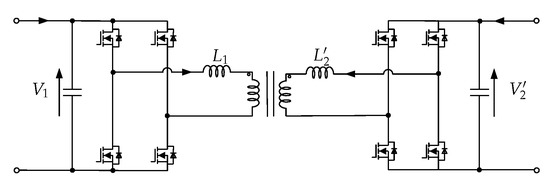 Direct current (DC) grids offer many advantages over alternating current (AC) grids, such as potentially higher efficiencies, and reduced filter effort [12,13,14]. DC-DC converters are one of the most important technologies for future DC grids. They offer precise control ability for power flow with high reliability. Dual active bridge (DAB), an isolated bidirectional dc-dc converter, has been proposed for many applications [15,16]. The DAB converter includes two full-bridge inverters that are connected by an isolation transformer at high-frequency operation, as shown in Figure 1. It has advantages such as a bidirectional power flow with high efficiency. However, it can only connect two ports; thus, many DAB converters need to be used to connect different elements to the DC-bus in the IES. Moreover, it may require a communication bus to control power flow.