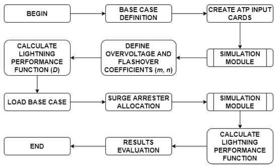 The transient simulations were carried out through the ATP and the construction of tables and , as well as the necessary modifications of the input cards of each simulation were performed according to the flowchart shown in Figure 9, the code being developed using the Python programming language.