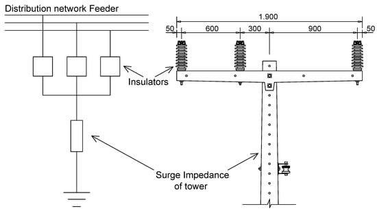 The tower surge impedance was defined through the cylindrical model proposed by [29], offering good representativeness for distribution networks poles.