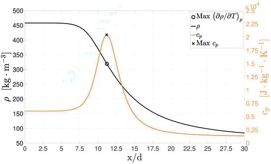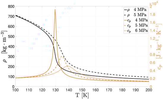 The two parameters and can therefore be used to identify pseudo-boiling temperatures for different pressure values as shown in Figure 2. For nitrogen, it is visible that as the pressure approximates the critical value of 3.39 MPa, the peak in specific heat becomes more noticeable along with the slope of .