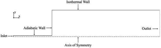 The domain contains five different boundary conditions, also depicted in Figure 3. A constant axial velocity profile is set at the inlet to , and the radial velocity is set to zero. At the walls, a no-slip condition is applied where both the normal and tangential velocity components are set to zero.