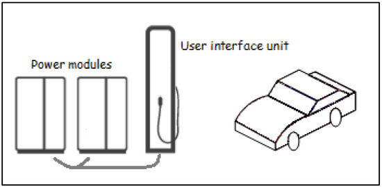 HPC technology allows DC fast charging up to 350 kW even if only few EVs currently available on the market are able to digest such high powers. HPCSs support the CCS standard (Combined Charging System) with the possibility to add the option for the CHAdeMO standard in multi-plug devices. The substantial change in the HPC technology, compared to the old generation of 50 kW fast chargers, consists of the modularity in the power cabinets, which allows customizable charging scenarios. In fact, the transformer and rectification circuitry are generally located in a rack or shielded housing (power unit) separated from the user interface unit, which in turn delivers the converted DC current to the vehicle. Figure 1 shows a scheme typical of this architecture, constituting two power units and the user interface unit. The user interface unit is equipped with adequate connectors and flexible charging cables characterized by an integrated advanced liquid-cooling system, to avoid overheating due to the delivered currents. A single power unit can charge a 400 V vehicle battery at 150 kW with an output current of 375 A, while two-power cabinet systems can deliver up to 350 kW and 500 A, being even able to simultaneously charge two EVs. The infrastructure can be enlarged at a later stage, adding more charging points. Furthermore, this dynamic management of the DC output power contributes to saving costs by optimizing the connection to the grid.