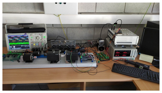 In order to confirm the universality of this phenomenon in motors available on the market, it was decided to purchase four types of BLDC motors from four different manufacturers, and to analyze the performance of their shaft positioning systems. For this purpose, an experiment was developed to compare the actual speed measured by the incremental encoder, with the speed measured using the signal generated by the motor’s Hall sensors in an open loop drive system. The measuring functions were executed by the dSpace GmbH (Paderborn, Germany) dSpace MicroLabBox system supported by the Tektronix (Beaverton, Oregon United States) Digital Phosphor Oscilloscope 5054-B (Figure 5). As a measure of the error in determining the speed in individual sectors , a percentage ratio of the calculated speed to the actual measured by the reference element, i.e. the incremental encoder, was proposed. Additionally, the values of phase currents of the BLDC motor were measured during the tests.