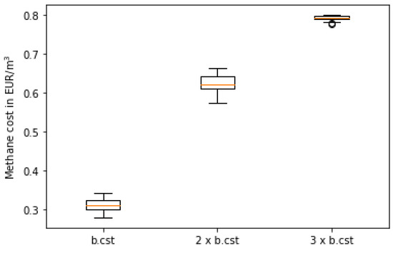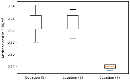 - cmethane—cost of 1 m3 of methane (EUR/m3),