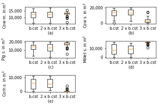 - Stürmer, B.; Schmid, E.; Eder, M.W. Impacts of biogas plant performance factors on total substrate costs. Biomass and Bioenergy 2011, 35, 1552–1560. [Google Scholar] [CrossRef]