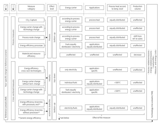 - Fleiter, T.; Rehfeldt, M.; Herbst, A.; Elsland, R.; Klingler, A.L.; Manz, P.; Eidelloth, S. A methodology for bottom-up modelling of energy transitions in the industry sector: The FORECAST model. Energy Strategy Rev. 2018, 22, 237–254. [Google Scholar] [CrossRef]