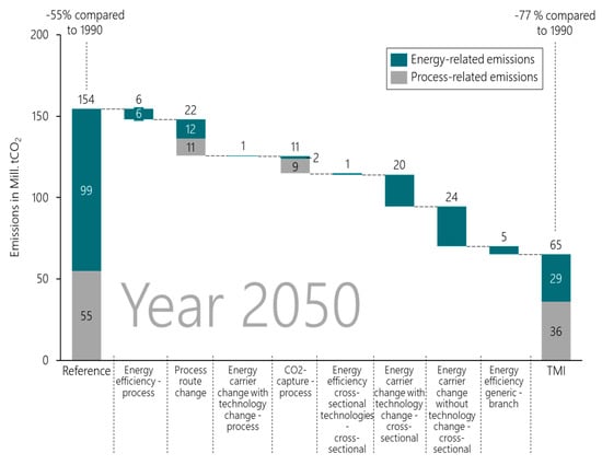 - Fleiter, T.; Herbst, A.; Rehfeldt, M.; Arens, M. Industrial Innovation: Pathways to deep decarbonisation of Industry—Part 2: Scenario Analysis and Pathways to Deep Decarbonisation; Fraunhofer-Institut für System- und Innovationsforschung ISI: Karlsruhe, Germany, 2019. [Google Scholar]
