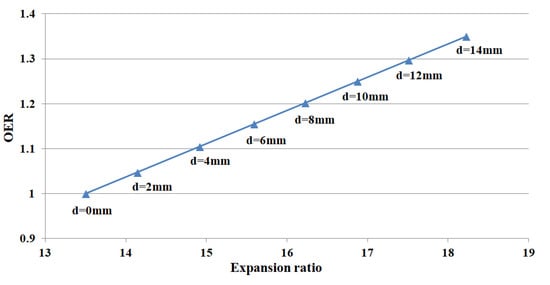 Variation of the overexpansion ratio (OER) with different eccentric sizes.