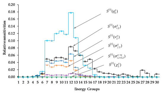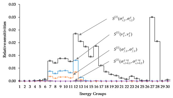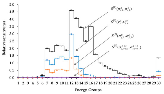 - The 2nd-order unmixed sensitivities with respect to the parameters underlying the average number of neutrons per fission are the second largest, being approximately 100–200% larger than the 2nd-order unmixed sensitivities with respect to the fission cross sections.