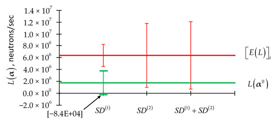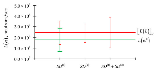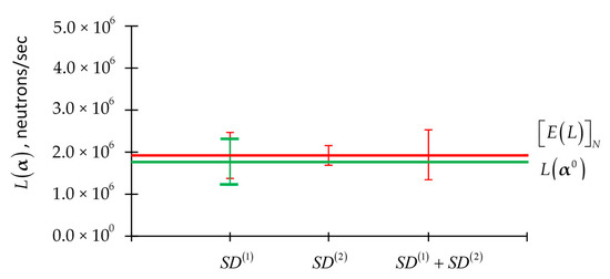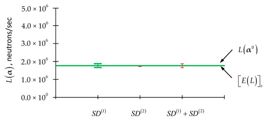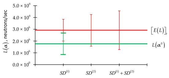 Of course, L(α) depends on the imprecisely known model parameters through the neutron flux. For convenient reference, the histogram plot of the leakage for each energy group for the PERP benchmark is reproduced [1,2,3,4] in Figure 1. The value of the total leakage computed using Equation (5) for the PERP benchmark is 1.7648 × 106 neutrons/sec.